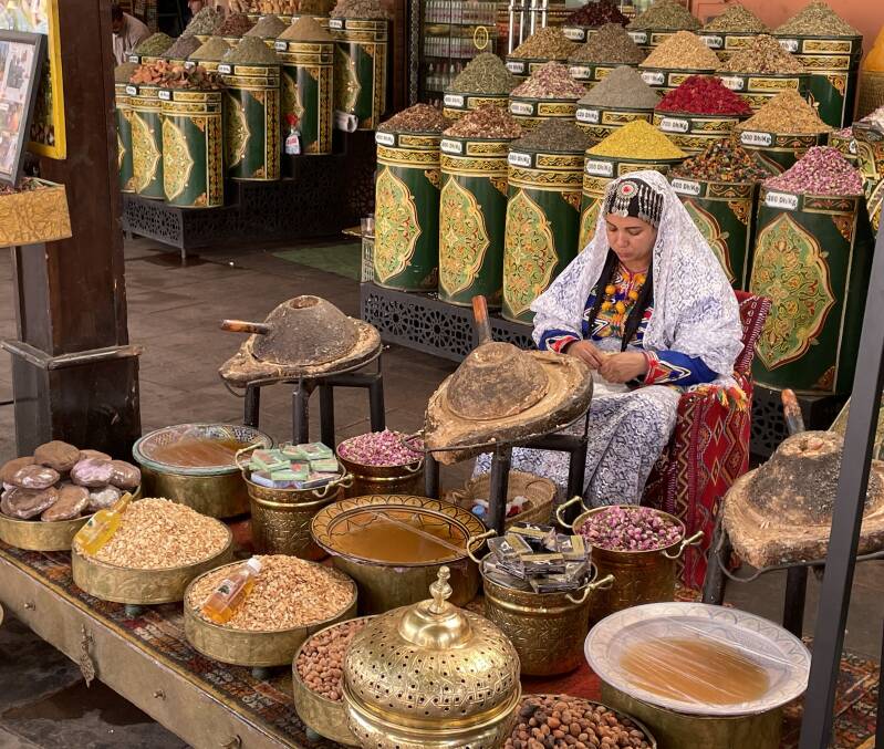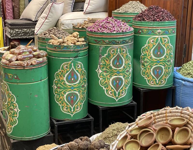 Een Mellah is in Marokko een Joodse wijk. Al sinds de 15e eeuw werd de Joodse bevolking al min of meer gedwongen in zulke wijken samen te wonen. Deze mellah ligt tegen het Bahiapaleis aan. Lopend door de soeks is het hier een feest van kleurige kruiden.