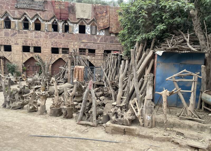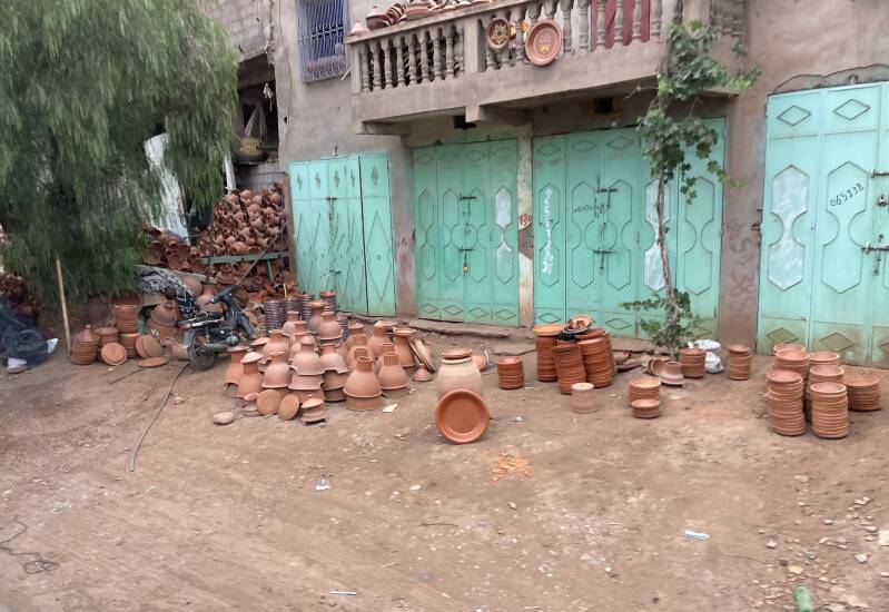 Langs de weg zien we tientallen verkooppunten van aardewerk, tuinmeubels en tegels, ijzeren en houten plastieken. En verder probeert men geld te verdienen aan het verhuren van Quads tot aan een rondje rijden op een dromedaris.