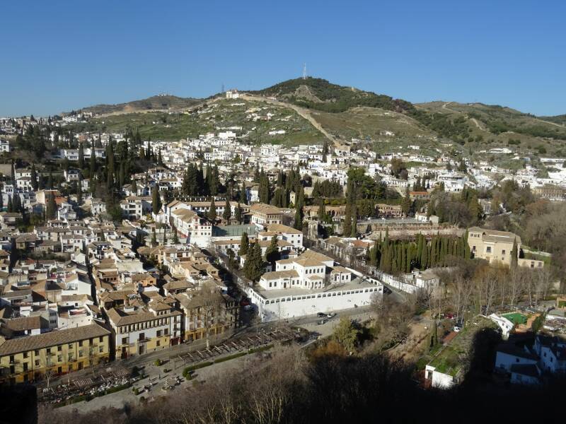 Zicht op de wijk Albayzin De Sierra Nevada op de achtergrond