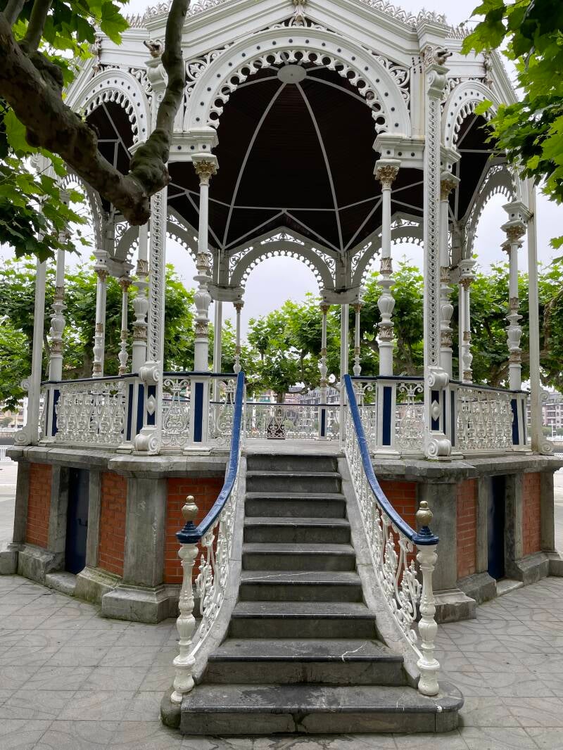 Getxo - een voor ons wat onuitsprekelijke naam - is de gemeente aan de andere kant van de brug. Nadat we wat vluchtig door Portugalete gewandeld zijn laten we ons door 'de veerpont' overzetten. De overtocht duurt amper een minuut of twee, drie. Aan de andere kant staat ons een wandeling van ongeveer een uur te wachten langs water en strand in de wijk Arenas. Onderweg zien we een aantal grote buitenhuizen. Deze werden hier gebouwd voor de rijke Bilbao’ers die vanuit deze villa’s konden uitkijken over de Golf van Biskaje. De mooiste huizen staan bijna aan het eind van onze voetreis langs het water.