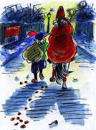 Wat ik bemerkte in november was dat Sinterklaas door de winkeliers in de ban is gedaan. Ik be-zocht in november: Maastricht, Eindhoven, Den Haag, Rotterdam en wat kleinere plaatsen als Goes, Middelburg, en Ommen. Vanaf 12 november waren de winkels - afgaande op de versieringen in de winkels - al meer gericht op kerst dan op Sinterklaas. Over Zwarte Piet dan helemaal maar te zwijgen! Daar is al zóveel over gezegd de laatste jaren, dat hij nu zelfs doodgezwegen is. Géén Pieterman meer te bekennen in de Hema (nog wel een versiering van de zak van Piet en zelfs nog een sinterklaasje aan de wand), niet in de Bijenkorf, niet bij......!